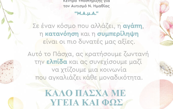 Με αφορμή την Παγκόσμια Ημέρα Αυτισμού, την Πέμπτη 2 Απριλίου 2026, ο Σύλλογός μας Μέριμνα Ατόμων με Αυτισμό και το [...]