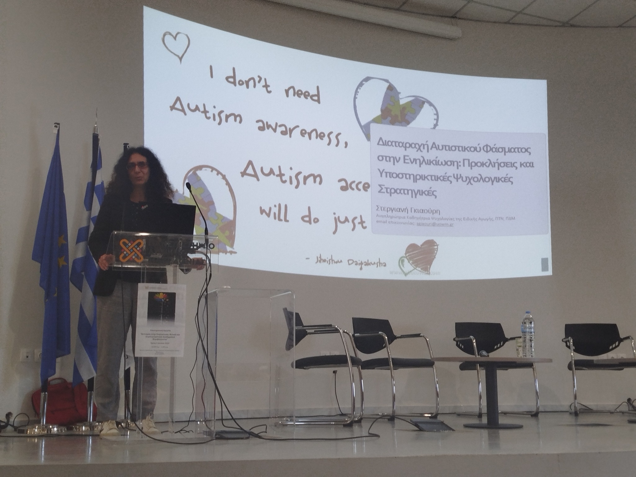 - «Διαταραχή Αυτιστικού Φάσματος στην Ενηλικίωση: Προκλήσεις και Υποστηρικτικές Ψυχολογικές Στρατηγικές» από την κα Στεργιανή Γκιαούρη, Αναπληρώτρια Καθηγήτρια, ΠΔΜ