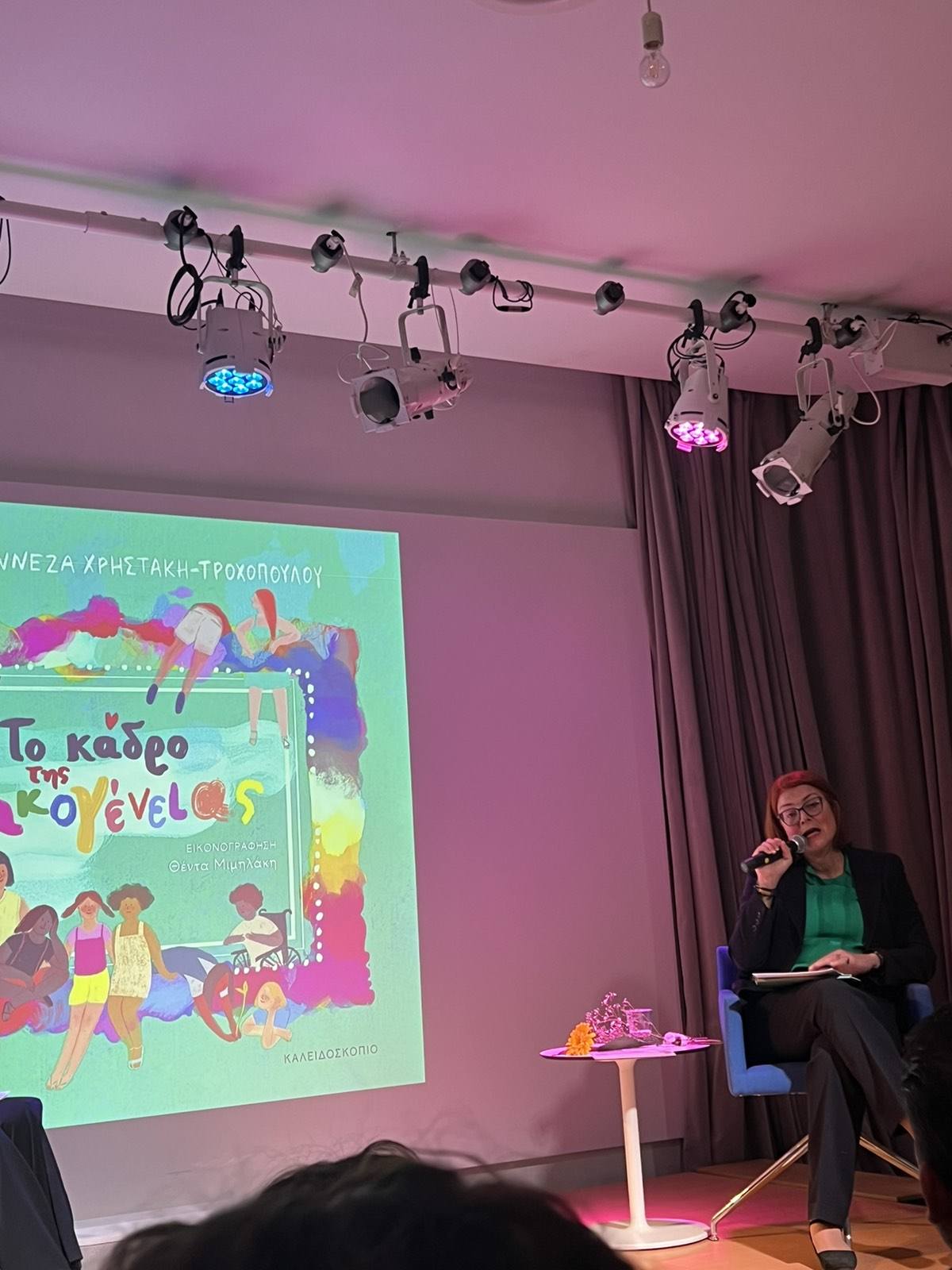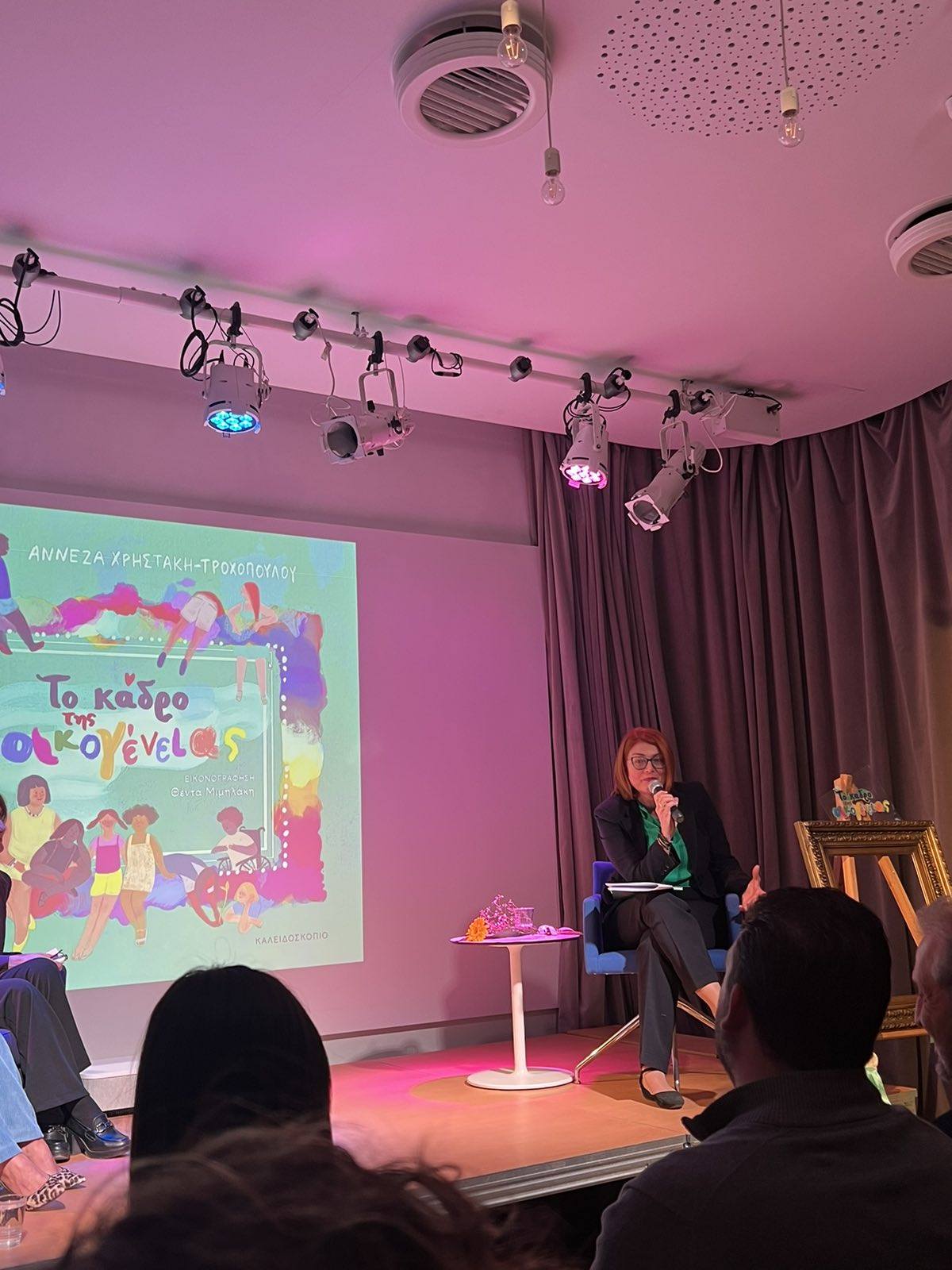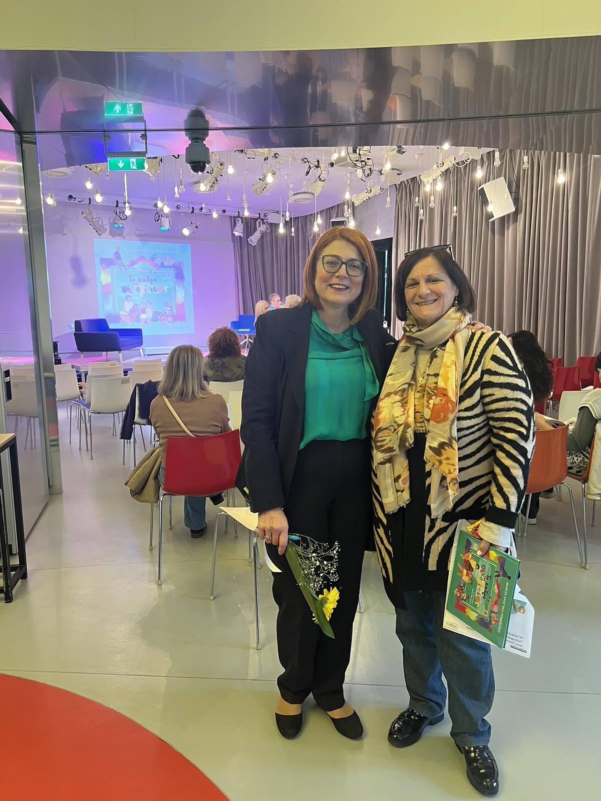 Το Κέντρο εκπροσώπησαν η κ. Νίκη Καραγιουβάννη, Κοινωνική Λειτουργός και η κ. Ειρήνη Αναγνώστου, Σχολική Ψυχολόγος και Επιστημονική Σύμβουλος του Συλλόγου μας. Κατά τη διάρκεια της εκδήλωσης, οι εκπρόσωποι του Κέντρου είχαν την ευκαιρία να συγχαρούν προσωπικά τη συγγραφέα για την ευαισθησία και τον ανθρωπισμό που αποπνέει το έργο της, καθώς και να την ευχαριστήσουν θερμά για την πρόσκληση και την όμορφη αφιέρωση στο βιβλίο της προς τα μέλη του συλλόγου μας.